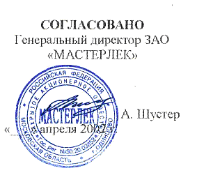 Work was carried out through the program, affirmed by the chief of 736 centers of sanitary-epidemiological supervision MO RF - by deputy main state sanitary doctor MO RF and matched with THE PRIVATELY HELD COMPANY "MASTERLEK".